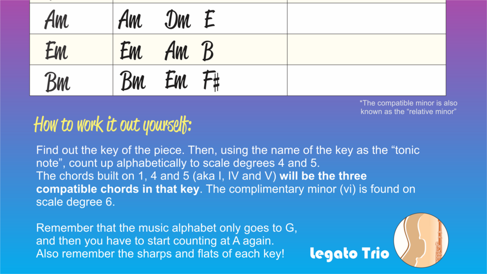 Get this cheat sheet from our video on how to find the three chords which go together in any key. You can get it for free or donate to support our work!